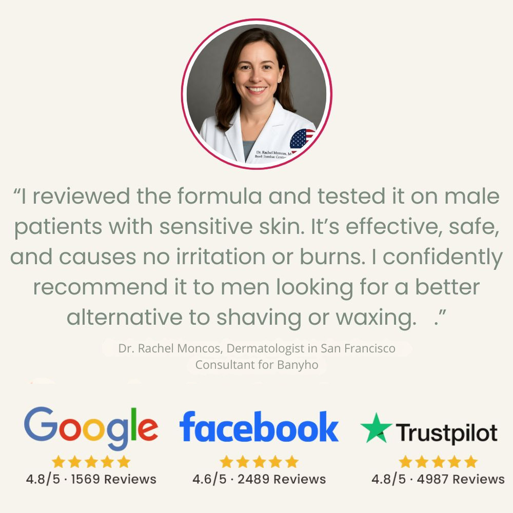 → Unlike razors or painful waxing, Banyho gently dissolves hair at the root — no cuts, no irritation, no harsh regrowth. Plus, it’s enriched with natural ingredients like Aloe Vera to leave your skin soft and calm.
